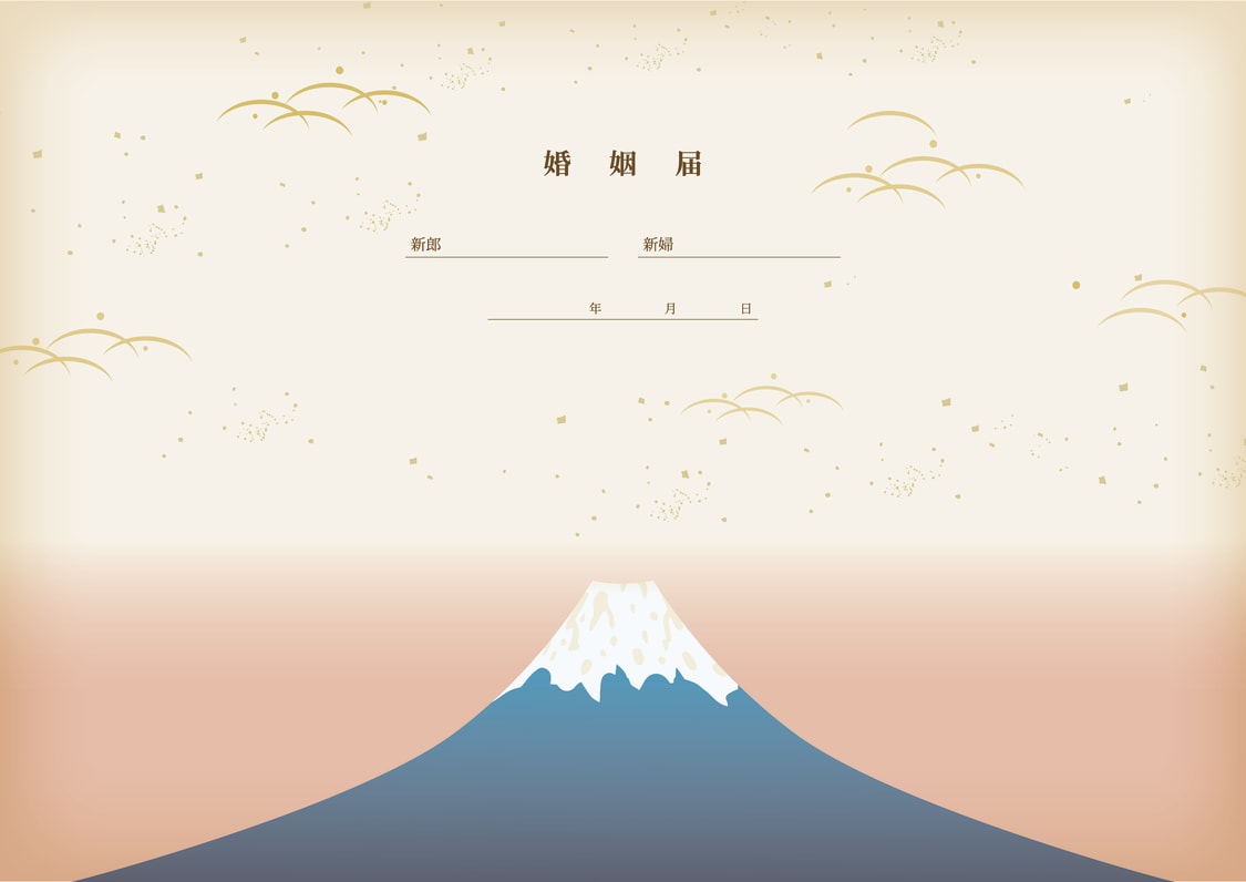 日本の象徴・富士山をあしらった、晴れの日にふさわしい和モダンな婚姻届です。